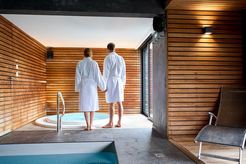 Un sauna infrarouge, un jacuzzi chauffé à 38 °, une piscine à 30° avec une option nage à contre-courant, une douche, un vestiaire et une toilette sont mis à votre disposition. Profitez également d'une terrasse privée, et prélassez-vous dans une chaise longue en admirant le château. Un lieu où le temps s'arrête.